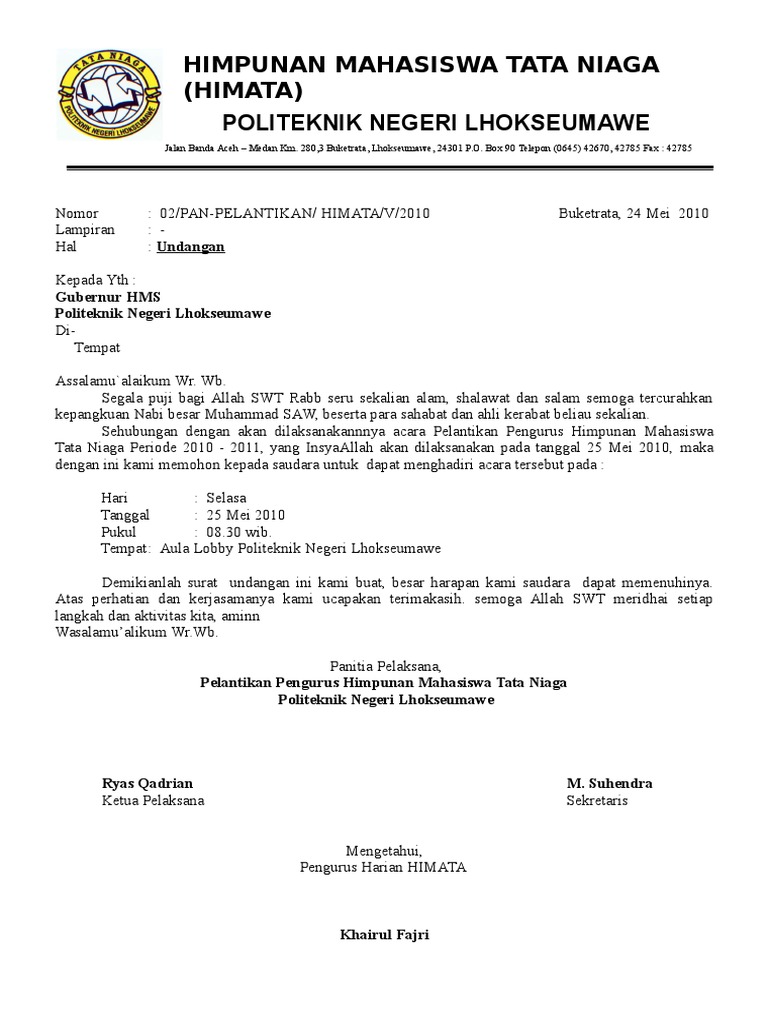 Kegiatan tersebut bisa berupa acara maupun rapat yang akan dilangsungkan dalam waktu dekat. Contoh surat valentine buat pacar. Jika kita terjemahkan bebas surat undangan adalah ajakan, pemberitahuan, permintaan surat undangan sendiri terbagi menjadi dua jenis salah satunya adalah surat undangan umum dan surat undangan individual, seperti contoh. Dari kedua jenis surat ini mempunyai tujuan tersendiri dan tidak dapat digunakan di sembarang tempat. Surat undangan adalah sebuah surat yang dikeluarkan baik oleh pribadi maupun lembaga atau perusahaan yang ditujukan kepada pihak yang bersangkutan dengan isi untuk mengundang mereka agar hadir pada acara yang dibuat. Demikianlah surat permohonan ini saya buat, besar harapan saya ibu gubernur dan pemda jatim bersedia membantu meringankan beban biaya pendidikan saya. Ada berbagai contoh surat undangan dengan berbagai jenis kegiatan seperti surat undangan rapat, pernikahan, reuni, dan sebagainya. Agar bisa membuat surat sesuai dengan kaidah penulisan bahasa indonesia, berikut ini adalah beberapa contoh surat undangan yang sering ditemui. Pemahaman menulis surat undangan resmi perlu dilakukan agar surat yang dibuat bisa sesuai dengan tata cara yang benar. Dalam surat audiensi dari organisasi mahasiswa, jika dilayangkan ke luar kampus, maka biasanya harus ada tanda tangan dekan, atau rektorat sebagai pertanggungjawaban. Contoh surat undangan resmi mengahdiri acara dibuat dan ditujukan bisa kepada individu atau sebuah kelompok dalam perusahaan sehingga memang biasanya ketua atau kepala sekolah yang di undang tidak bisa hadir disinilah akan di ganti dengan perwakilanya. Kedua jenis surat ini memiliki peruntukan tersendiri dan tidak bisa digunakan pada sembarang tempat. Nah, surat resmi biasa digunakan untuk tujuan acara yang resmi, sedangkan.
